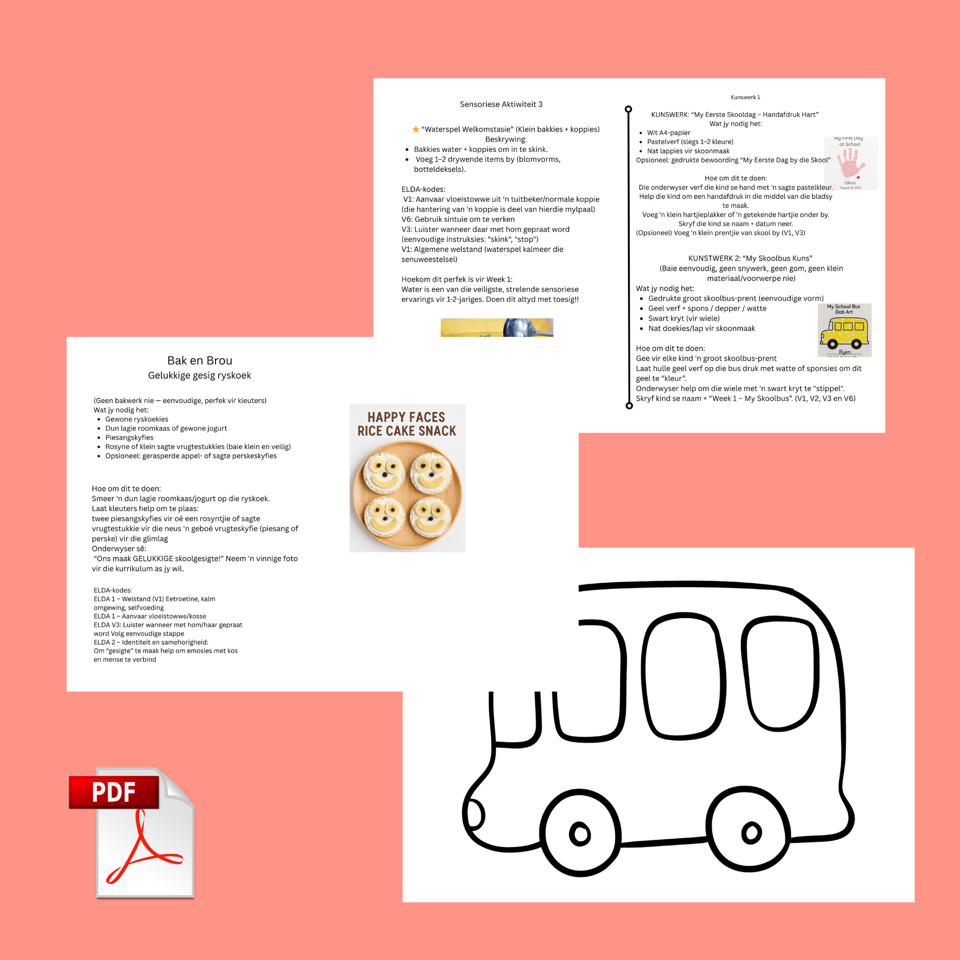 Kweek selfvertroue, kreatiwiteit en nuuskierigheid in jou peuterklas met hierdie volledige, praktiese en speelse 11-weke lesprogram, belyn met die jongste ELDA-riglyne van Suid-Afrika. Hierdie pakket is ideaal vir kleuterklaskamers, dagmoeders, tuisonderrig en enige opvoeder wat leer deur spel eerste plaas.