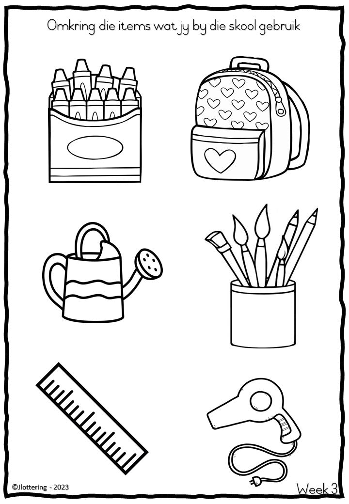 Hierdie werkboekie is vir kwartaal 1 graad R en is volgens CAPS uiteen gesit. Dit is slegs vir eie gebruik en mag onder geen omstandighede geshare word nie! Die pakket sluit die volgende in wat jy self in jou mandjie moet plaas: